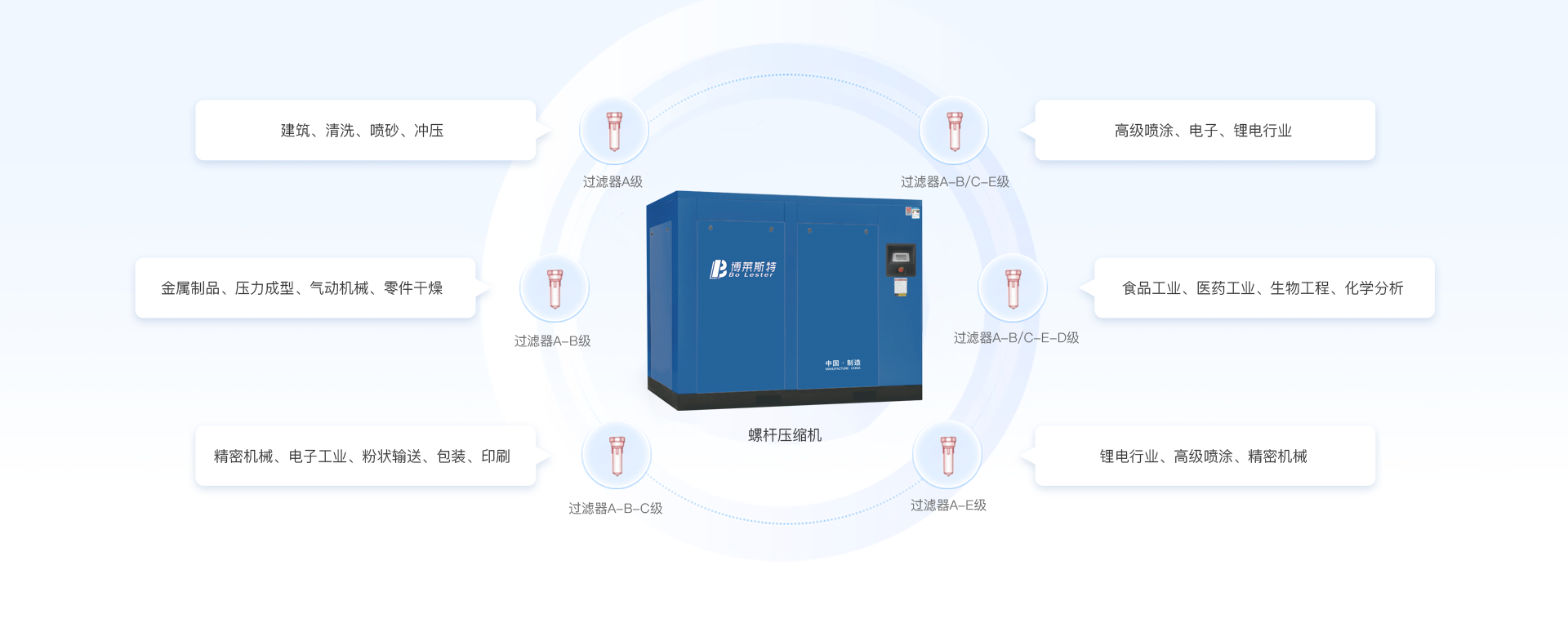 事螺桿式壓縮機、冷凍式干燥機、吸附式干燥機、真空泵、高精密過濾器等空氣動力系統(tǒng)設備研發(fā)、